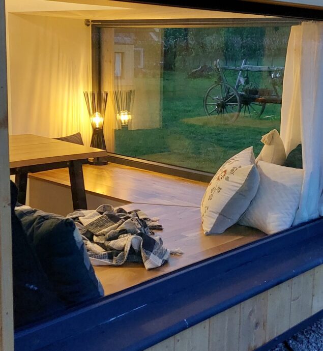 Ogólnodostępna część ogrodu daje możliwości grillowania, gry w badmintona, leżakowania, posiada plac zabaw dla dzieci oraz część SPA - balia LAVA Viking.